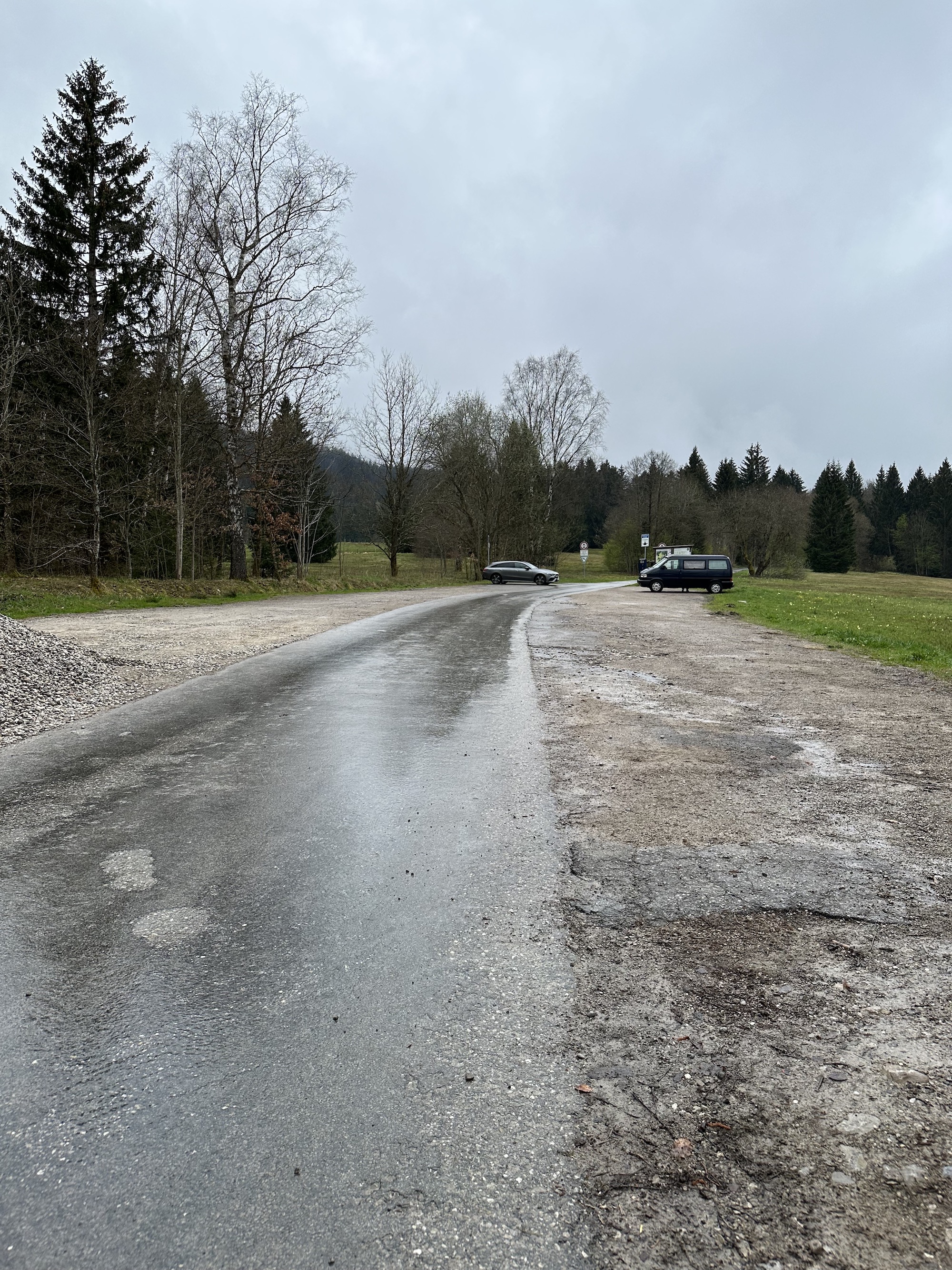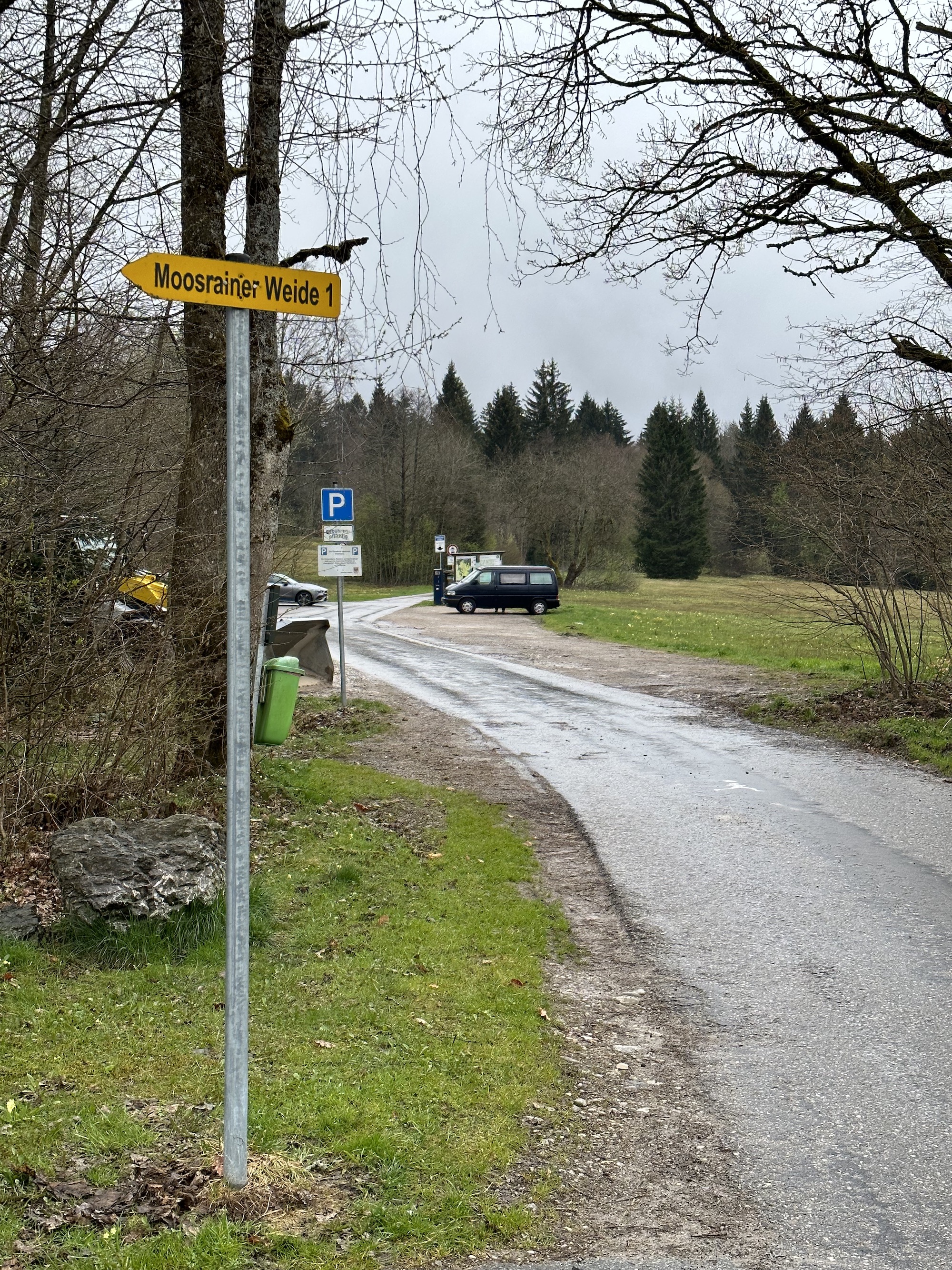 Vom Parkplatz im Tal, hinauf zur Alm.